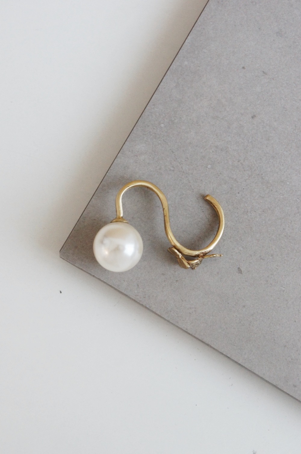 A butterfly shaped brass plates ring coated in gold color with a touch of 18mm synthetic pearl.